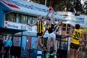 The second quarter began with a Werribee attack, but Angus Hastie made a strong spoil, getting all ball and stopping his opponent from taking a mark straight in front of goal.