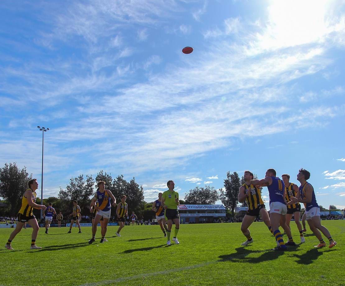 Tom Campbell then sent the ball deep inside the Zebras’ attacking 50 and Caminiti extended his arms to take a strong overhead mark. His set shot narrowly missed but moments later Caminiti put himself in a dangerous position yet again. This time he made no mistake and kicked his second goal of the game.