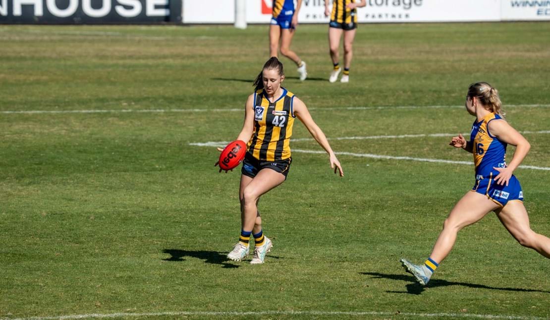 From the first bounce, it was a tight contest with both teams having plenty of touches and applying the pressure. Williamstown held most of the territory inside 50 but our defence worked hard, keeping the Gulls to only one goal in the first quarter. Zoe Barbakos was immense, lifting her tackling pressure and winning the ball back inside 50, while Isobel Hartog showed a real presence in the midfield. Williamstown showed why they are a tough defensive team when on their game and took an eight-point lead into the second term.