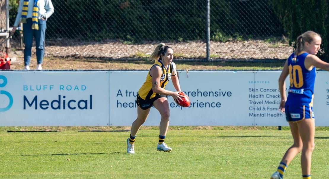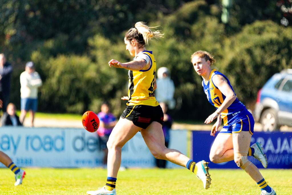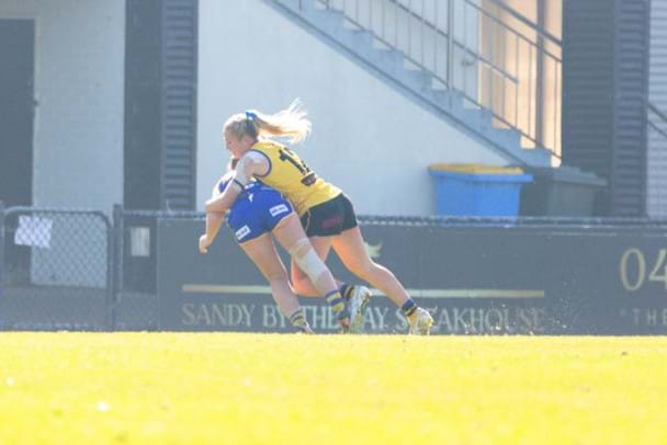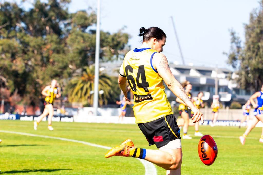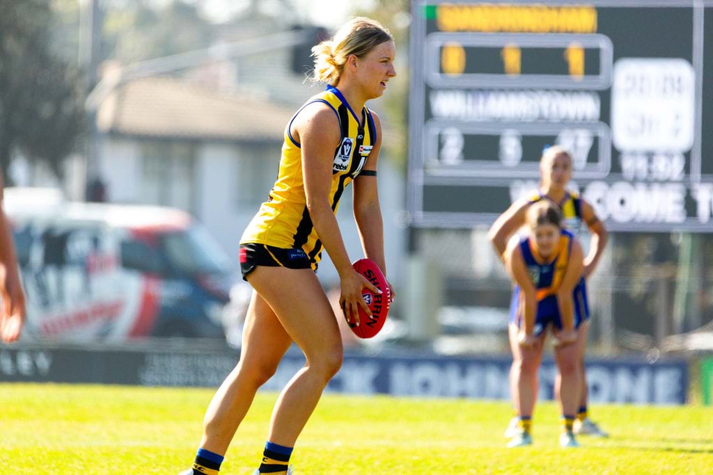 Our forwards were under pressure in the second but did an excellent job with their possession game dominance. Grace Hodder took a spectacular intercept mark in the back 50, connecting well with Makhaela Bluhm who took a strong mark in the midfield. Ali Hynes was superb defensively, smothering a kick to deny a Seagulls goal. Despite our defensive unit doing everything possible and applying the pressure, a late goal for Williamstown in the closing stages of the second quarter extended the Seagulls’ lead to 16 points at the main break.