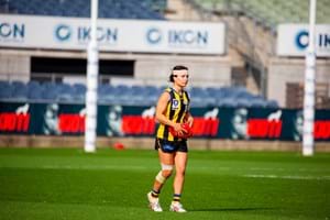 Carlton got on the board early in the second with a composed set shot from 40 metres out, but we kept up the heat. Entwistle continued to intercept across half-back, finishing with a team-high five marks. Melanie Bertuna lit up the quarter with blistering pace through traffic, injecting energy into the contest. Despite a knock that saw her bandaged up, Barbakos remained at the coalface, winning tough contests and surging the ball forward. Imogen Evans was everywhere, finding plenty of the footy and consistently pushing us into attack.