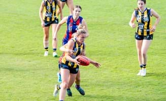It was a scrappy first quarter, with neither team able to properly take control of the game. 21 tackles were laid inside the first five minutes, with Erica Fowler (11 disposals, 39 hitouts) and Grace Hodder (18 disposals, five clearances) leading the charge from the middle. Port Melbourne controlled the territory, winning the inside-50 count 15-1, but brilliant defensive displays from the back five, in particular Bella Enno (15 disposals, four tackles) and Courtney Aughtie (17 disposals, six marks), stemmed the scoring to only one goal at the first break.