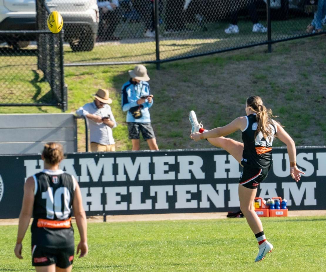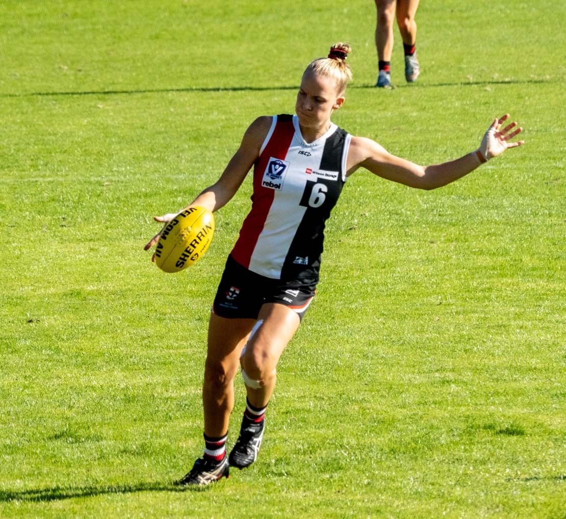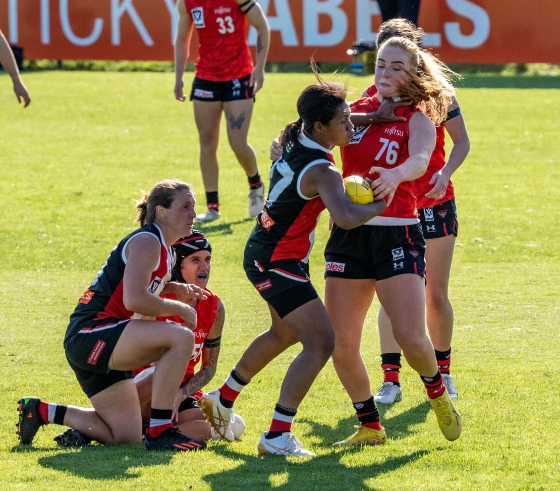 Grace Hodder also epitomised the team’s willingness to work both ways, amassing 16 disposals and eight tackles, bettered only by Wrigley for the Saints (ten tackles).