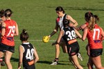 After nine debutants in round one, another two players pulled on the red, black and white for the first time this week. Kim Ebb (14 disposals and three tackles) and Jane Moore (three disposals) will be looking to build on their strong debuts.