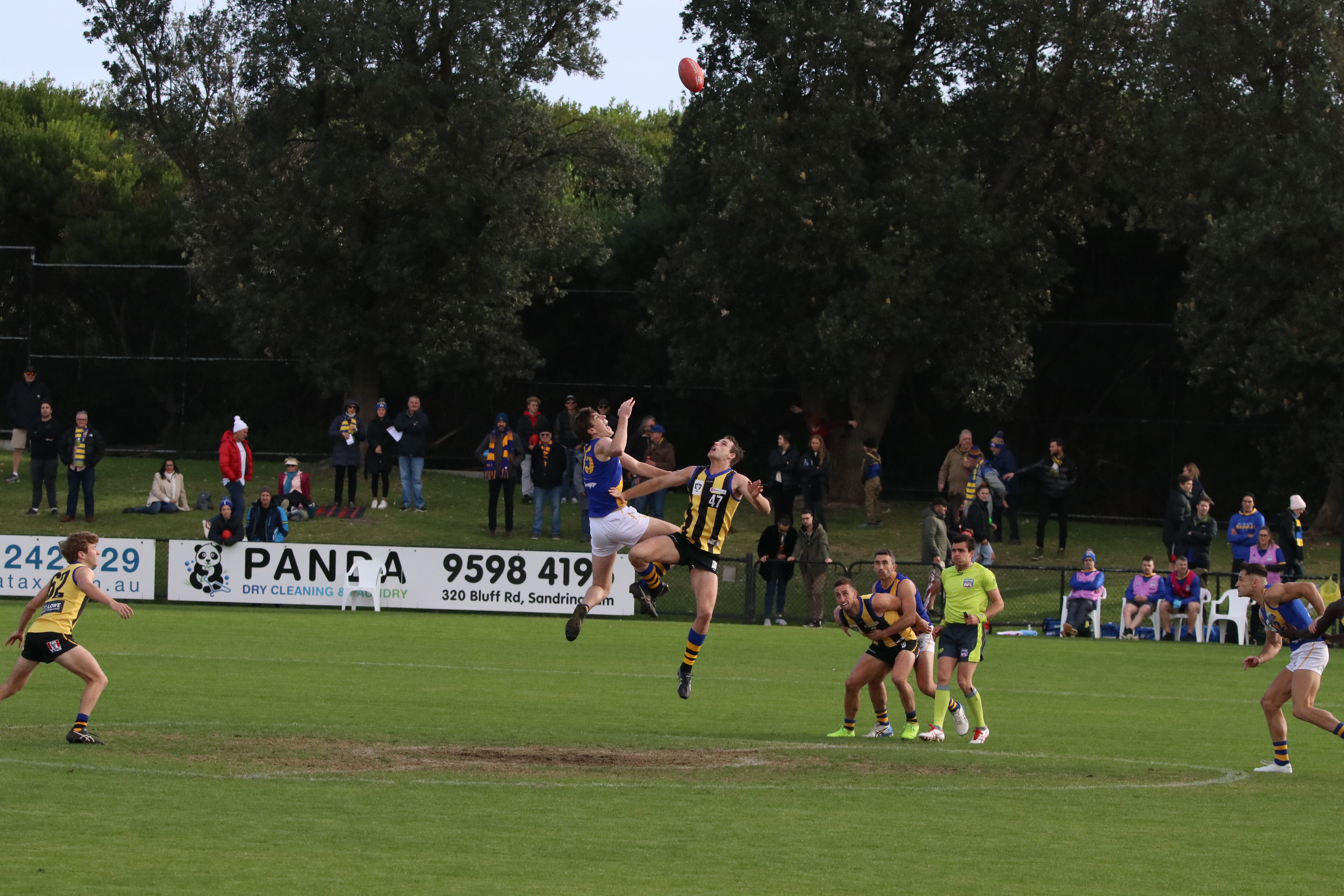 Sandringham were kicking into a strong headwind, but were moving the ball well by foot as they applied early forward pressure.