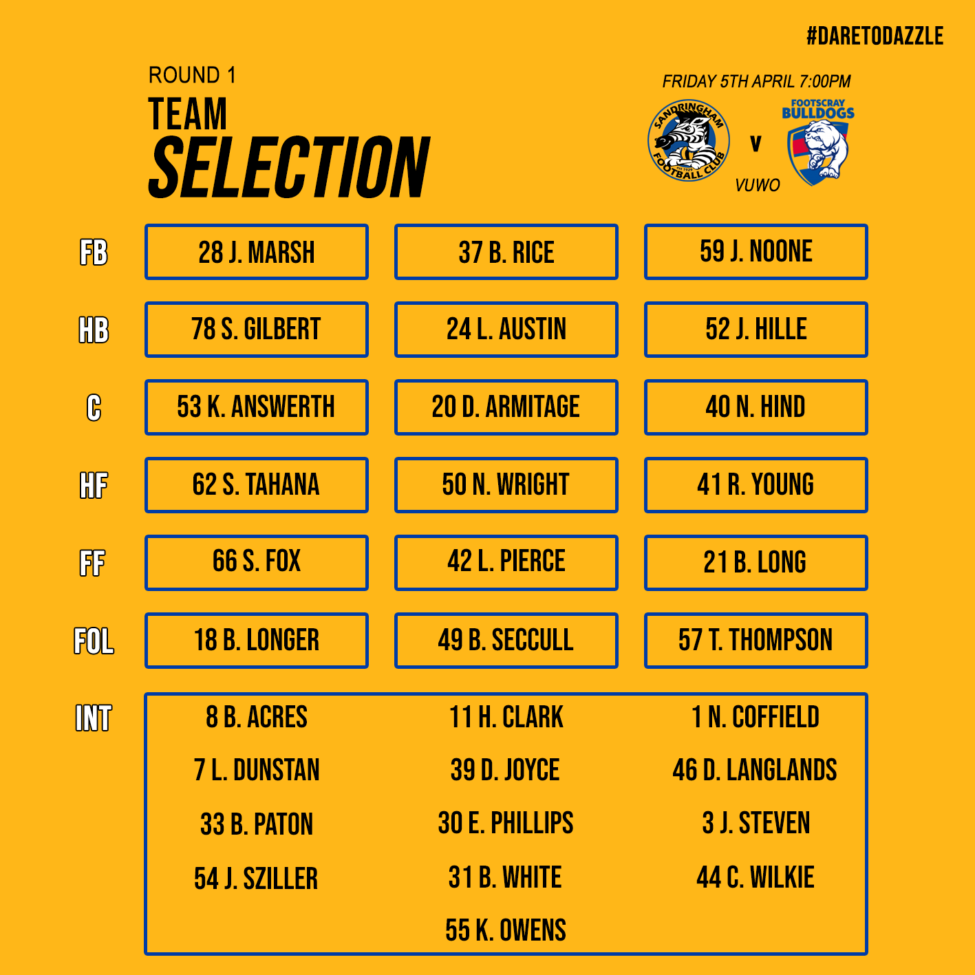 04/04/2019 | Team selection for our Round 1 clash against Footscray.