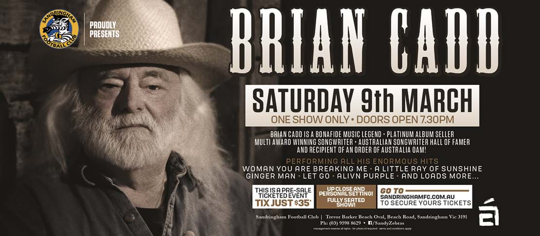 6/12/18 | Sandringham FC presents Brian Cadd on Saturday 9th March!