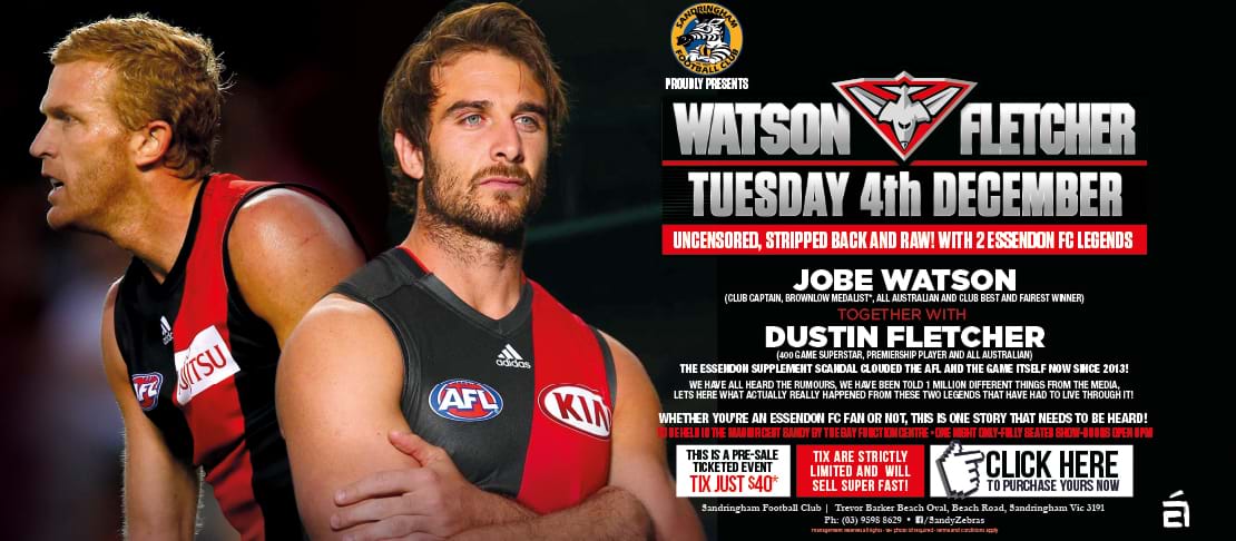 18/10/2018 | Sandringham Football Club presents Jobe Watson and Dustin Fletcher. Uncensored, stripped back & raw with 2 Essendon FC legends!