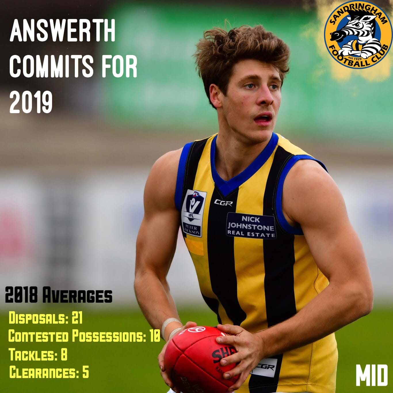 30/08/2018 | Sandringham Football Club can disclose another re-signing for next season, this time in co-captain and 2017 Best & Fairest winner, Kade Answerth.