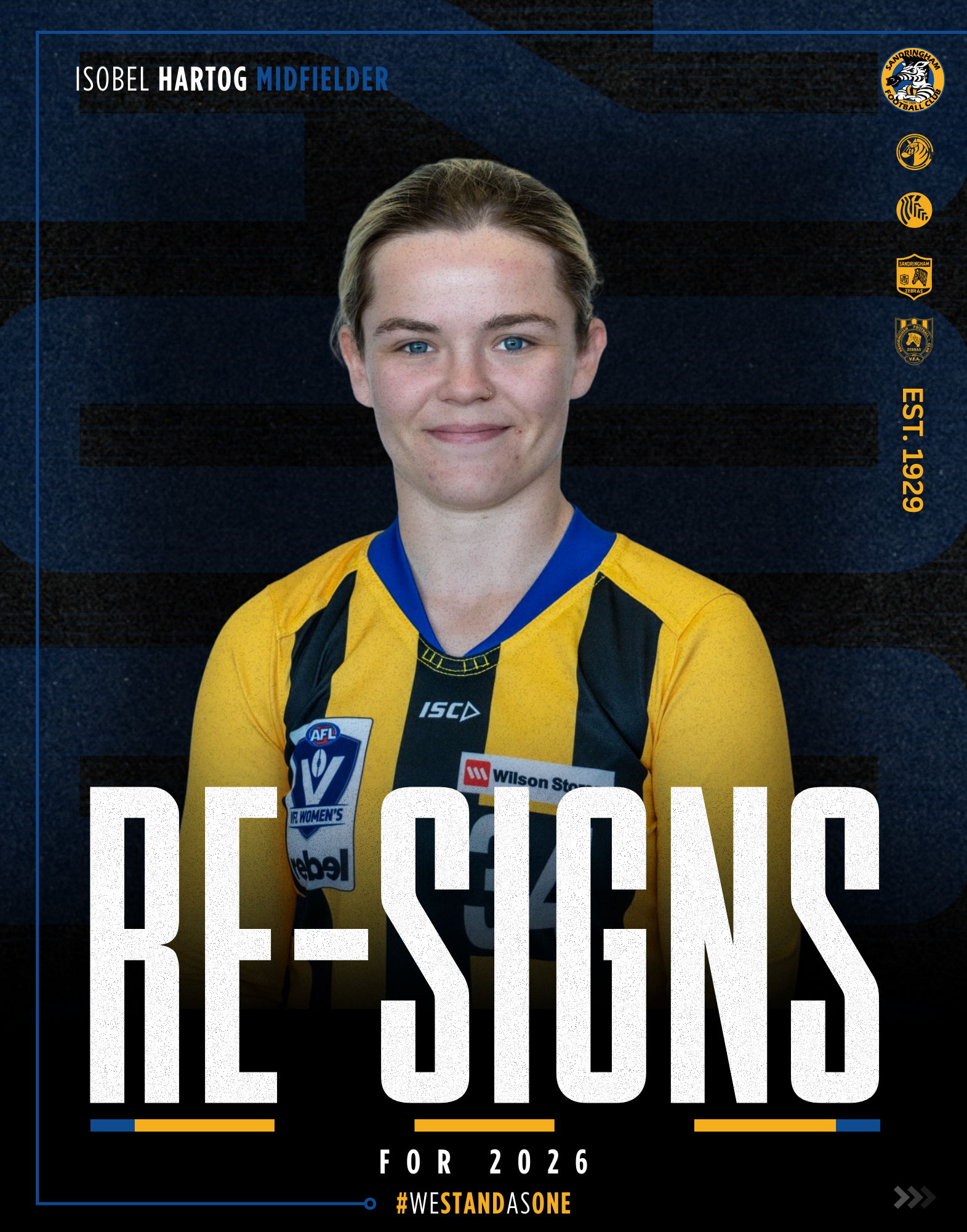 Since November 1, 2024 the Southern Saints are now known the Sandringham Zebras to align with the VFL program, however our alignment remains with St Kilda AFLW.